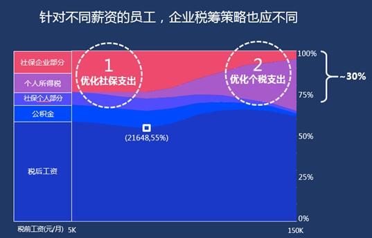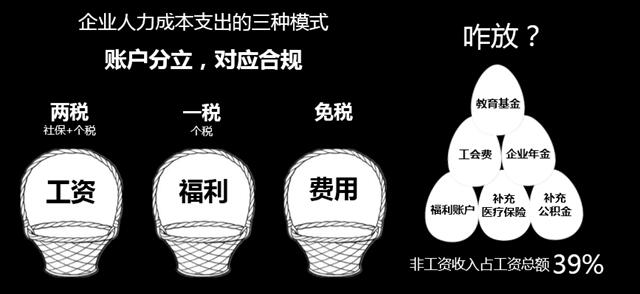 “薪酬體系優化”方法論認為企業可以通過將“正確”的雞蛋放到“正確”的籃子里的方式進行合理稅籌,從而降低企業整體人力成本支出,在這種結構性優化的同時如果企業能確保提供員工海量且優質的供應資源那么員工的整體收入感知變化將不會很大。