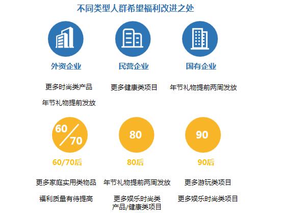 結合消費升級的方向,可以看到,不同年齡層、不同性別的員工,喜好各有不同。例如上文提到的,即使是80后、90后都關心的健康,兩個年齡層關注的側重點也不同,前者更關心健康飲食,后者更關注護膚和局部塑形。那么,在消費升級的大背景下,企業要提供何種形式的節日福利,才能讓喜好不同的員工都滿意呢?
